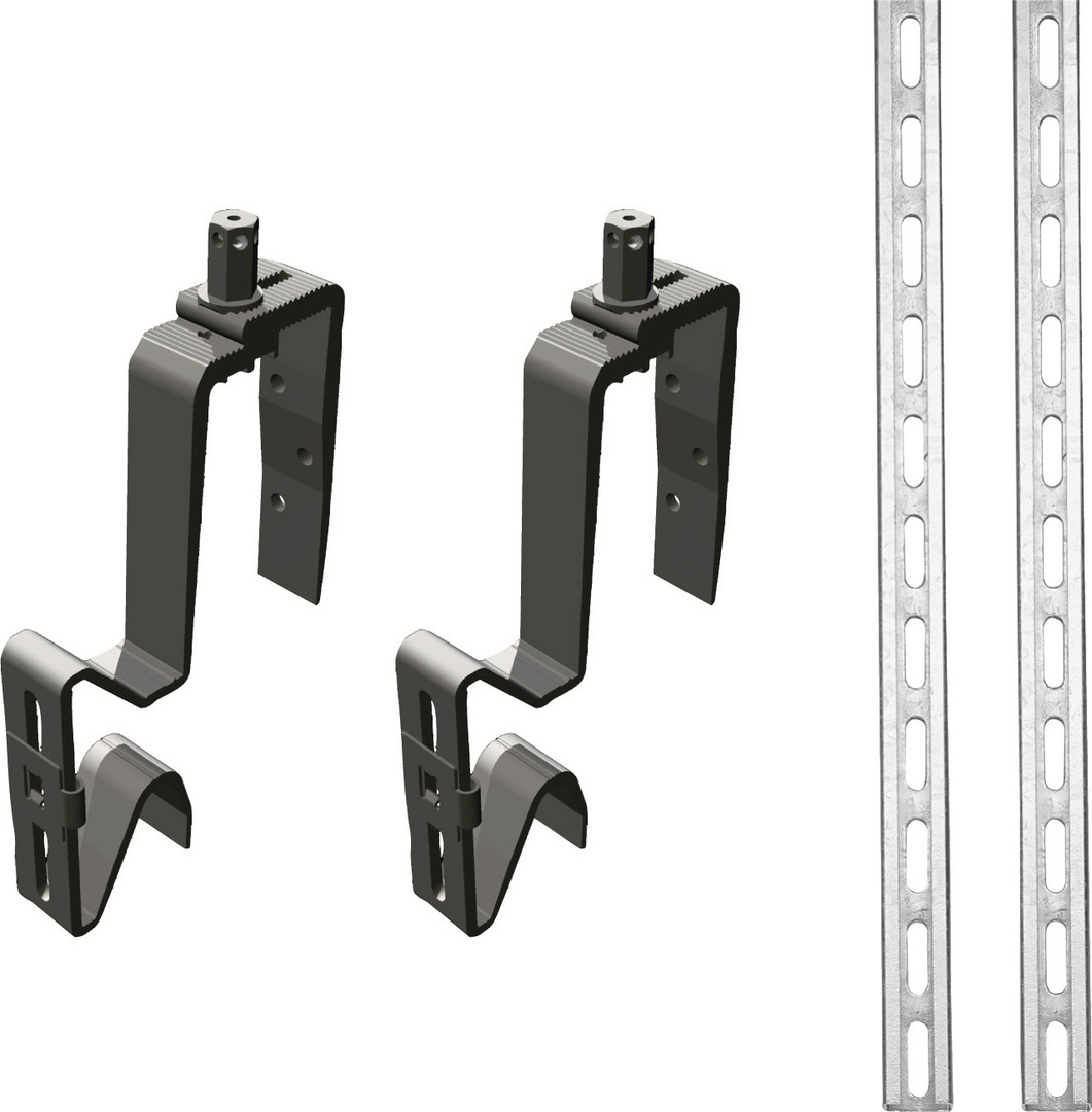 pro Kollektor notwendig bei Aufdachmontage bis zu einer Windlast von 1,1 kN/qm (151 km/h) und einer Schneelast von > 2 kN/qm-3,1 kN/qm, Aluminium-Profilschienen, flexible Dachhaken/Sparrenanker, 2 Stück, Befestigungsmaterial, benötigt wird FKA11-2 oder FKA12-2