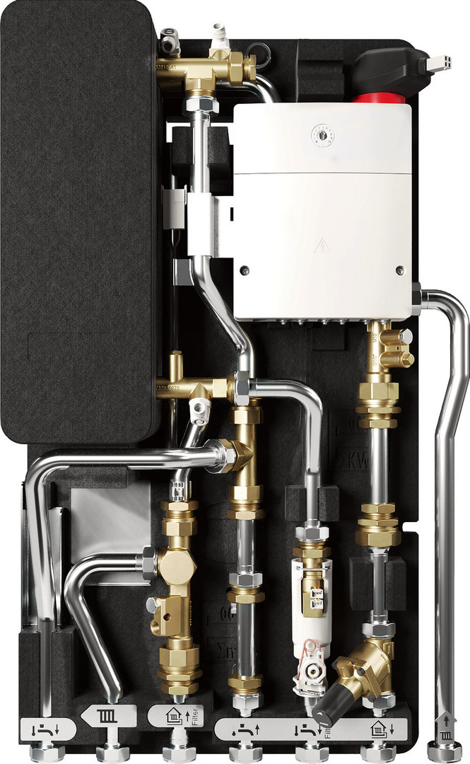 für Sanierung von Mehrfamilienhäusern mit dezentralen Etagenheizungen, flexible Auswahl zwischen Anschlüsse (PWC,...) von oben oder unten - entsprechend der Installation des Bauvorhabens, mechanische Regelung für Parallelbetrieb von Heizung und Warmwasserbereitung im Durchflussprinzip, edelstahlgelöteter Plattenwärmetauscher zur Vermeidung von Korrosion, geeignet für alle Trinkwasserqualitäten gem. Trinkwasserverordnung, Einsatz bis max. Wasserhärte <20° dH zulässig, ab 14 °dH mit Enthärtungsanlage, für Aufputzmontage im Bosch-Gehäuse, Abmessungen des Gehäuses entsprechen den Maßen alter Etagenheizungen, kompakte Bauform mit isoliertem edelstahlgelötetem Wärmetauscher, Differenzdruckregler im Primär- und Sekundärkreis, Zonenventil und Rücklauftemperaturbegrenzer im Sekundärkreis, sowie Passstücke für Kaltwasser- und Wärmemengenzähler und Wasserschlagdämpfer