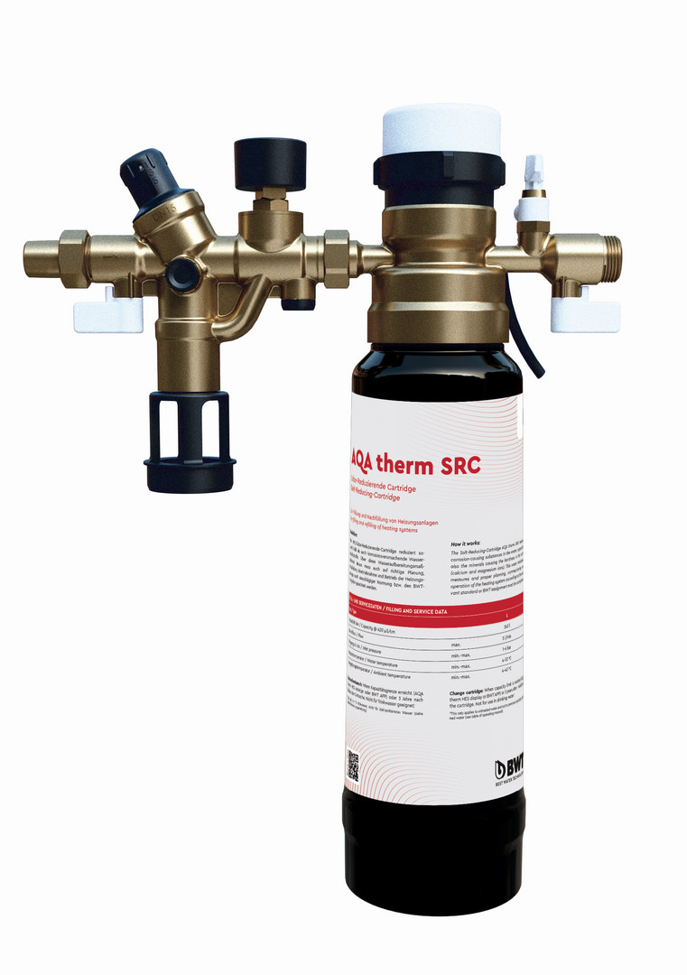 für eine sichere und normgerechte Be- und Nachfüllung von Heizungsanlagen bis 400 l Wasserinhalt, bestehend aus Systemtrenner BA gemäß EN 1717, Füllblock mit Wasserzähler und Salze-Reduzierende-Kartusche Medium, Wasser-/Umgebungstemperatur 30/40 °C, Kapazität bei 420 µS/cm 140 l