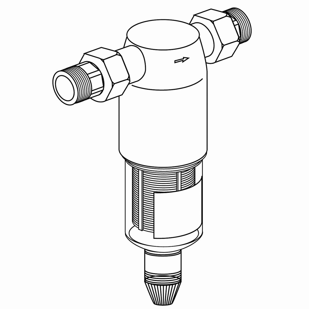 Filter komplett mit Messingkopfteil, Klarsichtzylinder, Filterelement, Anschlussverschraubungen, Nenndruck PN 16, Wassertemperatur max. 30 °C, Umgebungstemperatur max. 40 °C