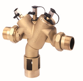 der Ansprechdruck spielt systembedingt (Einsatz von Rückflussverhinderer) keine Rolle mehr, Fremdenergie ist nicht erforderlich, es kann keine Luft mehr in das Leitungsnetz eingetragen werden, Zulassung wie Rohrtrenner Einbauart 2 und Gefahrenklasse 1-4, Gehäuse aus Rotguss (DN 20-65) bzw. Grauguss DN 80, Epoxidbeschichtet (DN 80), Feder und Ventilsitz aus Edelstahl, verschließbare Anschlüsse für Druckmessgeräte, Rückflussverhinderer Wassereingang, Entlastungsventil in Mittelkammer, Rückflussverhinderer für Wasserausgang, Nenndruck PN 10, Temperatur max. 60 °C