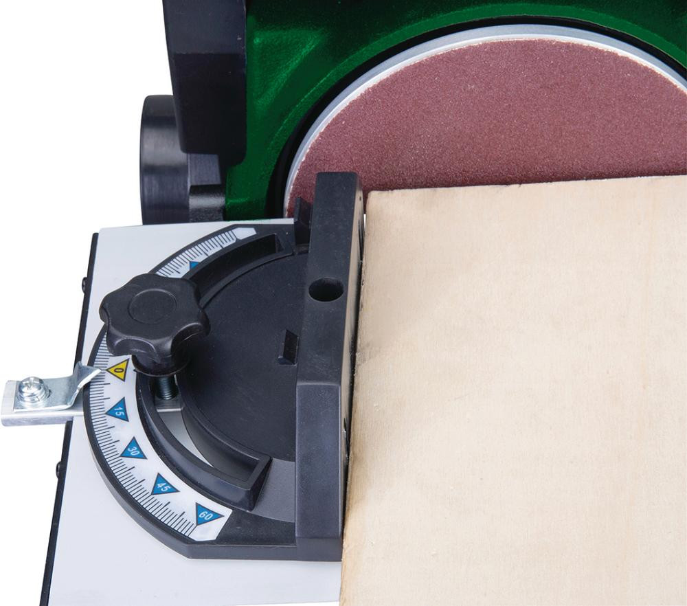 Lieferung: Mit Gehrungsanschlag, Schleifband Korn 80, Schleifscheibe Korn 80.
