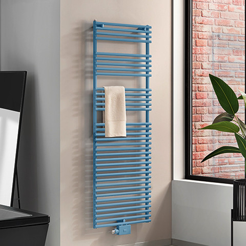 für Zentralheizung (zusätzliche Ausstattung mit Elektroheizstab) und für die Erwärmung von Handtüchern und Textilien, horizontale Rundrohre 23 mm mit vertikalen Rundrohren 30 mm wasserführend verbunden, mit 1-3 Aufnahmeöffnungen für Handtücher, mit M-Anschluss DN 15 x 50 mm mittig unten und 2 Anschlüssen DN 15 von unten, rechts und links außen, sowie 1 Entlüftungsanschluss DN 15 von oben rechts, Oberfläche pulverbeschichtet DIN 55900 und bei ca. 180 °C eingebrannt, serienmäßiges Zubehör: 1 Entlüftungsventil DN 15 sowie 2 Blindstopfen DN 15 mit Innensechskant und 3 Wandbefestigungen erfüllen AK 2-3 nach VDI 6036 je nach Baugröße, mit Schrauben und Dübeln, Wärmeleistungen nach DIN EN 442-2, Heizmedium Wasser, max. zul. Betriebstemperatur 95 °C, max. zul. Betriebsüberdruck 8 bar