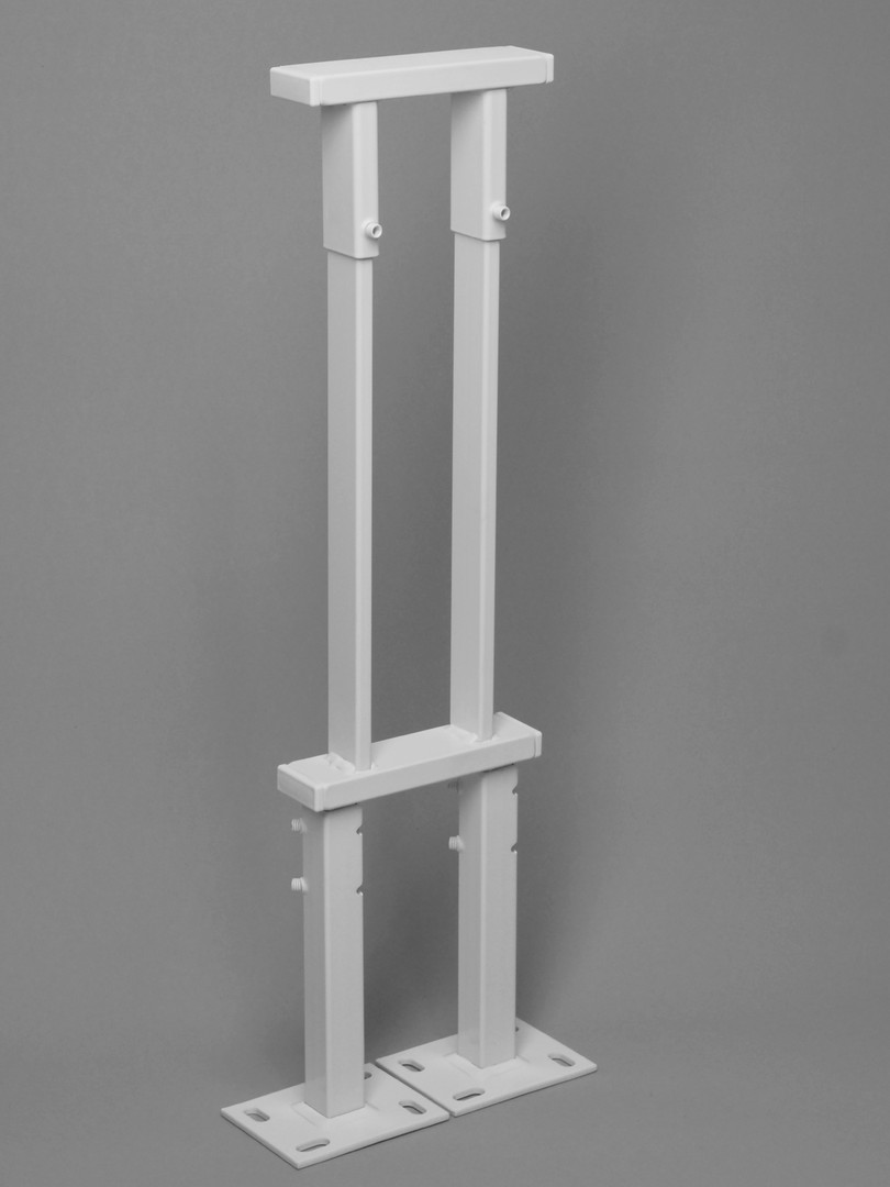 für HK-Bauhöhe max. 6 EL, Höhe 370-400 mm, für Mehrsäuler Röhrenradiatoren 4- bis 6-Säuler geeignete Standkonsole für die vertikale (stehende) Heizkörpermontage und Verwendung als Sitzbank, Auflage für Sitzfläche oder Ablagefläche bauseits, quadratische Standrohre (Unterteil) 25 x 25 mm verschweißt mit Bodenplatte 100 x 80 mm, Trägerrohre (Oberteil) aus Rechteckprofilen 30 x 10 mm mit Sims-/Sitzbankträger (140 mm Tiefe), Metallteile pulverbeschichtet