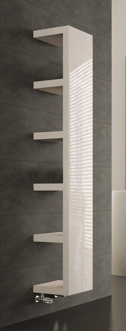für Zentralheizung, mit innenliegendem wasserdurchflossenem Rohrregister zur Beheizung des Frontbereichs, vollständig umschlossen von einer moduliert gestalteten quadratischen Design-Verkleidung mit zur Wand geöffneten Fächern u.a. zur Ablage und Erwärmung von Textilien, Anschlüsse IG DN 15 links und rechts von unten, serienmäßiges Zubehör Ventilset 2 bestehend aus Eckventil, Eckverschraubung matt vernickelt, absperr- und entleerbar, beides DN 15, Thermostatkopf Puro im Farbton Edelstahlmetallic, 1 Entlüftungsventil DN 15 und 4x Wandbefestigungen mit Schrauben und Dübeln, Wärmeleistungen nach EN 442, Heizmedium Wasser max. zul. Betriebstemperatur 95 °C, max. zul. Betriebsüberdruck 4 bar