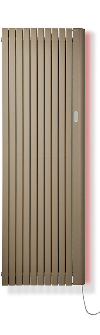 aus horizontalen Sammlern aus Rundrohren 30 mm mit im Widerstandsschweißverfahren aufgesetzten vertikalen, abgerundeten Flachprofilrohren 50 x 10 mm verbunden, mit Wärmeträgerflüssigkeit gefüllt (Frostschutz bis -6 °C) und integriertem Elektroheizstab NOW2, Anschluss 230 V/50 Hz, Klasse II, IP44, über ca. 1,2 m rotem Anschlusskabel mit Stecker, Steuerung via WiFi über IRSAP Now-App, mit Einstellmöglichkeiten wie u. a. Tages- und Wochenprogramm, Oberfläche pulverbeschichtet DIN 55900 und bei ca. 180 °C eingebrannt, Standardfarbton weiß 9016, wahlweise andersfarbig gemäß BEMM-Farbpalette, mit Elektroheizstab NOW, app-gesteuert mit Temperaturregelung und weiteren Funktionen, 4 Wandbefestigungen mit Schrauben und Dübel