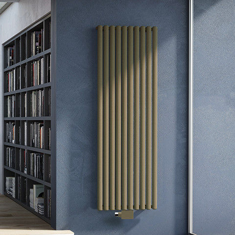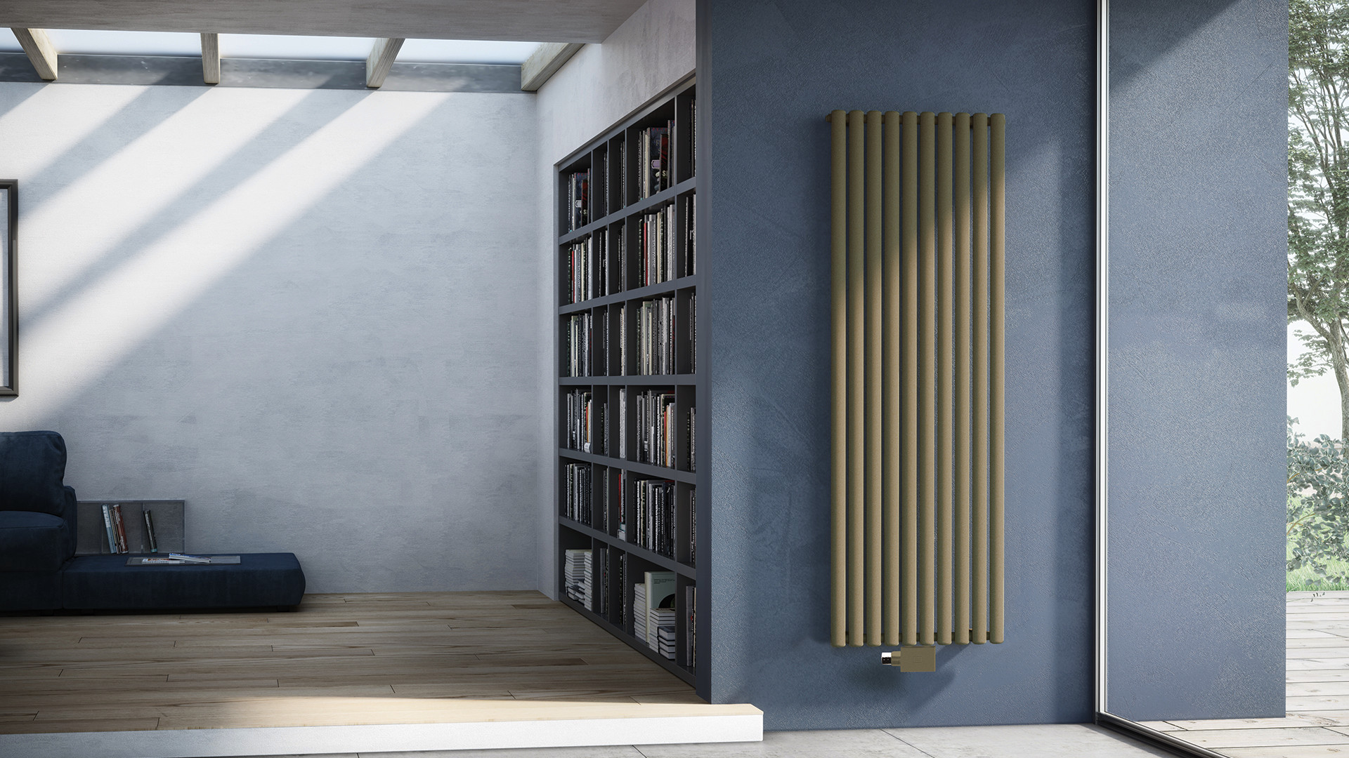 aus horizontalen Sammlern aus Rundrohren 30 mm mit im Widerstandsschweißverfahren aufgesetzten vertikalen, ellipsenförmigen Profilrohren 50 x 25 mm verbunden, internationales Geschmacksmuster Nr. 006148086-0001 und Nr. 006148086-0002, wahlweise Montage Sammelrohre vertikal und ellipsenförmige Profilrohre horizontal, Elementteilung 60 mm, mit 4-6 Anschlüssen IG DN 15, Oberfläche pulverbeschichtet DIN 55900 und bei ca. 180 °C eingebrannt, Standardfarbton Weiss 9016, wahlweise andersfarbig gemäß BEMM-Farbpalette, serienmäßiges Zubehör 1 Entlüftungsventil und Blindstopfen verchromt, sowie Wandbefestigungen mit Schrauben und Dübel, entspricht den Richtlinien der gesetzlichen Unfall-Versicherer (GUV), Wärmeleistungen nach EN 442, CE-Leistungserklärung nach EU-BauPVo, Heizmedium Wasser max. zul. Betriebstemperatur 95 °C, max. zul. Betriebsüberdruck 4 bar