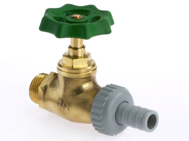Bender Durchgangsventil 1312 DN 15, Eingang AG, Ausgang KS Schlauchverschraubung, ohne Entleerung, CR-Messing