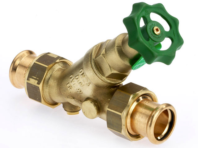 Bender KFR Ventil 1634 SANHA Press DN 25, 28 mm, CR-Messing, beidseitiges AG, nichtsteigend, ohne Entleerung W530321