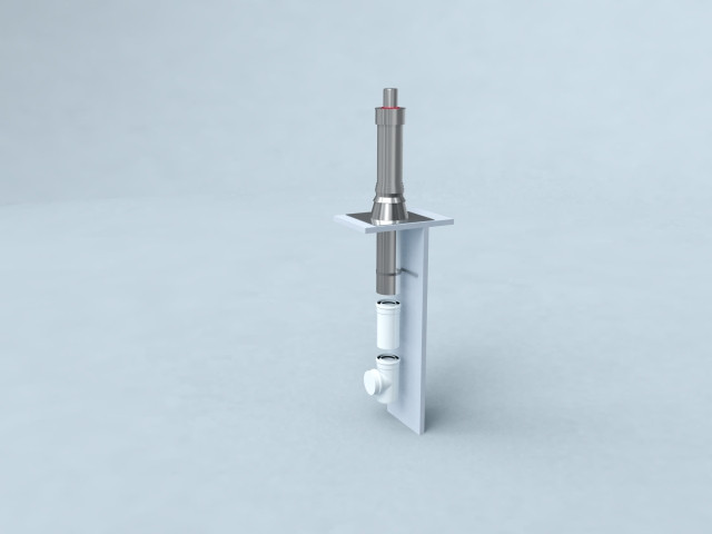 bestehend aus 1x LAS Revisionselement, 1x LAS Rohr 500 mm, 1x LAS Sparrenhalter, 1x Flachdachflansch aus Edelstahl, 1x Dachaufsatz