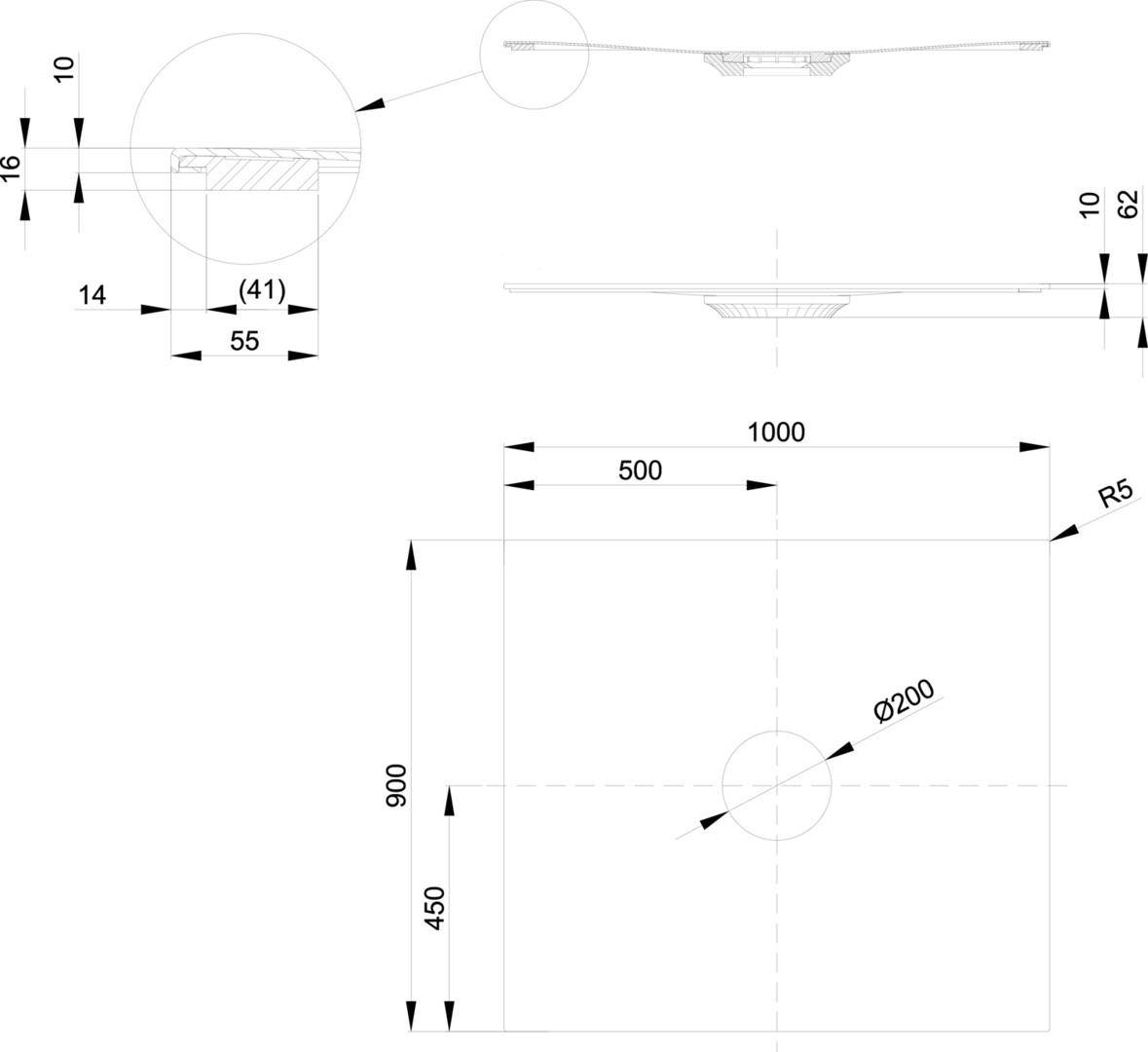 Bette Duschfliese BetteAir 1000 x 900 mm, flint, Rechteck, glasierter Titan-Stahl, mit Minimum-Täger