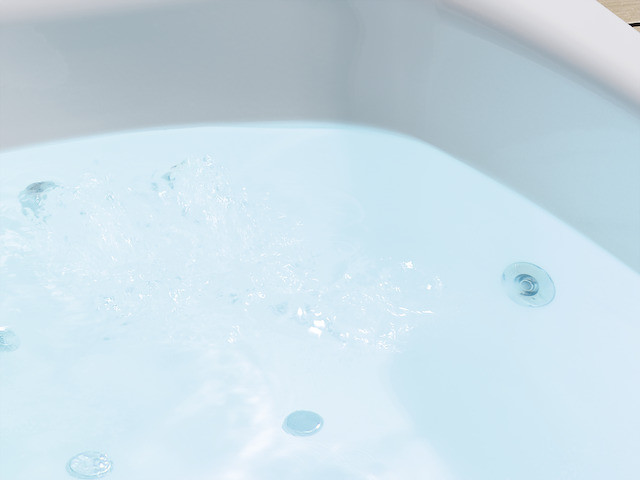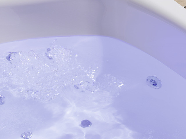 werkseitig vormontiert, jeweils auf der langen Seite der Badewanne, Farbscheinwerfer sind in der Lage das komplette RGB Farbspektrum abzubilden, Bedienung uber Folientastatur im Inneren der Badewanne