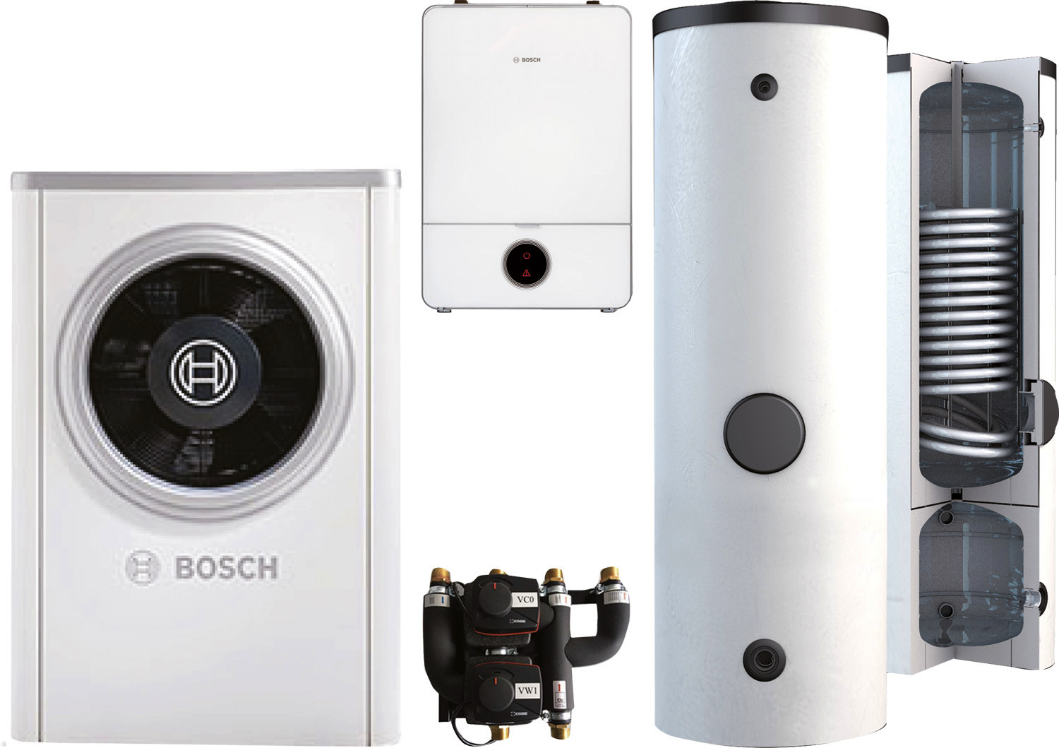 Bosch Luft-Wasser-Wärmepumpen Paket bestehend aus 6 Komponenten. Luftwärmepumpen-Paket BOPA CS752 CS7001iAW 7 OR-S, AWE9, BPU400-C, INPA