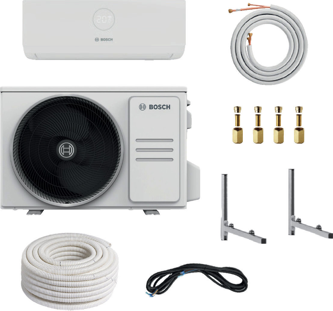 Bosch Split-Klimageräte Paket bestehend aus 10 Komponenten. Split-Klimapaket BOPA CL302 CL3000i26-Set, Wandkonsole, Doppelrohr