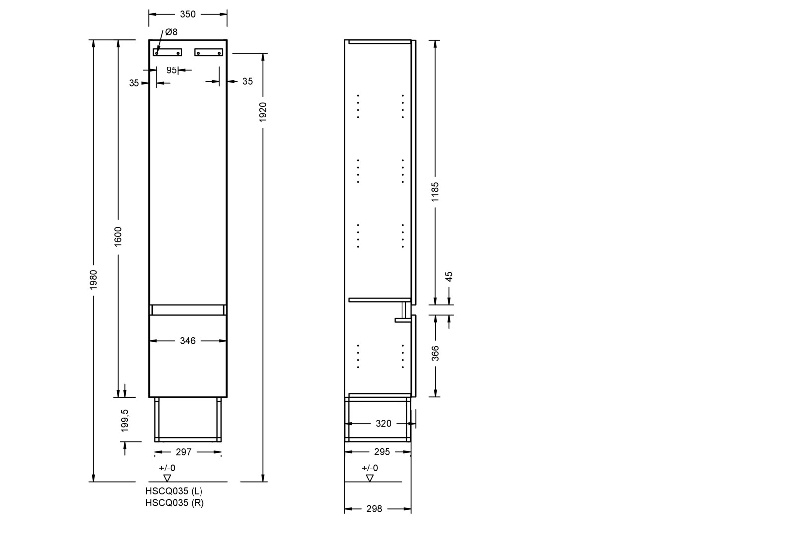 Burgbad Chiaro 2.0 Hochschrank 180 x 35 x 32 cm, 2 Türen, links, Weiß Matt W388674