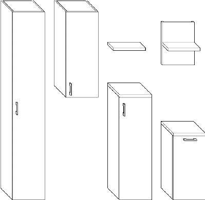 bestehend aus Hochschränke, Unterschränke, Halbhohe Schränke, Hängeschränke und Waschtischunterschrank. Ergänzungsmöbel zu bestehenden Auftrag, ohne Anfahrtpauschale, Einzelmöbel zusätzlich Anfahrtpauschale