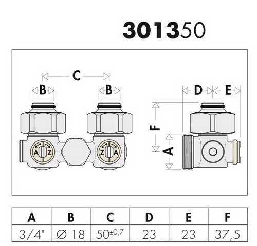 Caleffi Einrohr-Hahnblock Heizkörperanschluss 3/4" IG, Anschluss Klemmverschraubung 3/4", Eckform