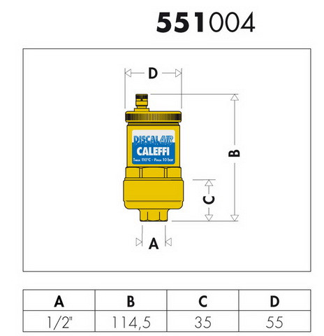 Caleffi Schnellentlüfter DISCALAIR 1/2" AG, Messing, automatisch, IG-Anschlüsse