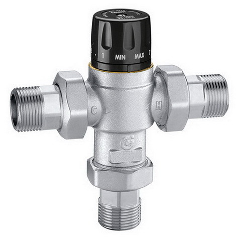 einstellbar, mit Verbrühschutzfunktion, mit Schmutzfängern, entzinkungsfreies Messing-Gehäuse, max. Betriebsdruck 10 bar, max. Eingangstemperatur 90 °C