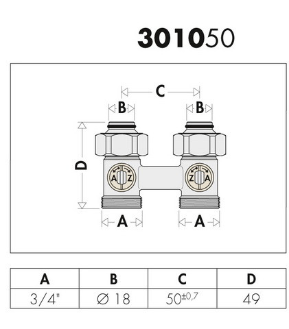 Caleffi Zweirohr-Hahnblock Heizkörperanschluss 3/4" IG, Anschluss Klemmverschraubung 3/4", Durchgangsform