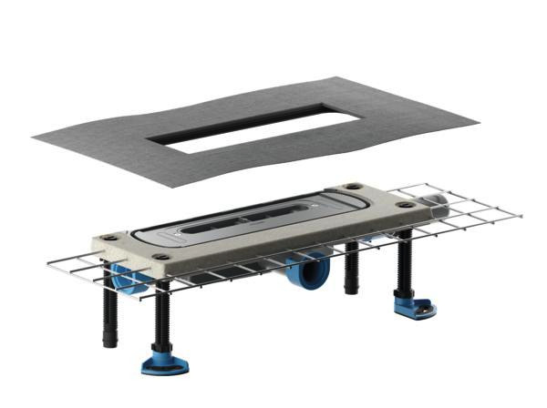 Bauhöhe 65 mm, zum Einbau mit Duschrinnen CeraFloor, CeraWall, CeraFrame Individual, Zentrix, CeraNiveau, werkzeuglos an 3 Seiten variabel montierbar, mit Kugelgelenk verstellbar von 0-15 °C, Polymerbetonkragen mit eingegossener Baustahlmatte, flexibler Dichtflansch zum sicheren Anschluss an Verbundabdichtungen gemäß DIN 18534, vorgefertigter Randdämmstreifen, schallentkoppelte Montagefüße zur Fixierung und Höheneinstellung 65-240 mm, herausnehmbarer Geruchs- und Reinigungsverschluss, Sperrwasserhöhe 30 mm (abweichend von DIN EN 1253), Bauschutzabdeckung, Haarsieb (optional einsetzbar), Ablaufgehäuse und Ablaufstutzen aus Polypropylen, hochschlagfest