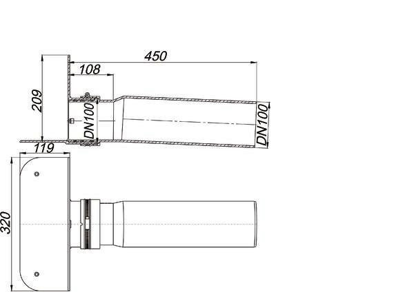 Dallmer Attikaablauf FPO-PP DN 100, Ablaufstutzen seitlich, 3Grad abgewinkelt