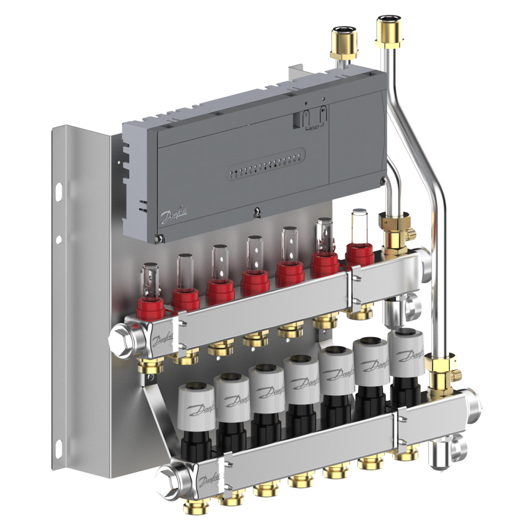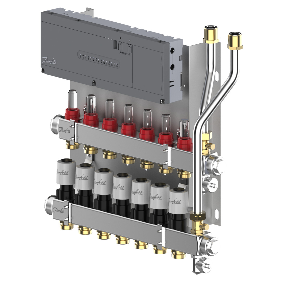 Danfoss Edelstahlverteiler SGCi mit 7 Heizkreisen und Icon2 mit 230 V TWA