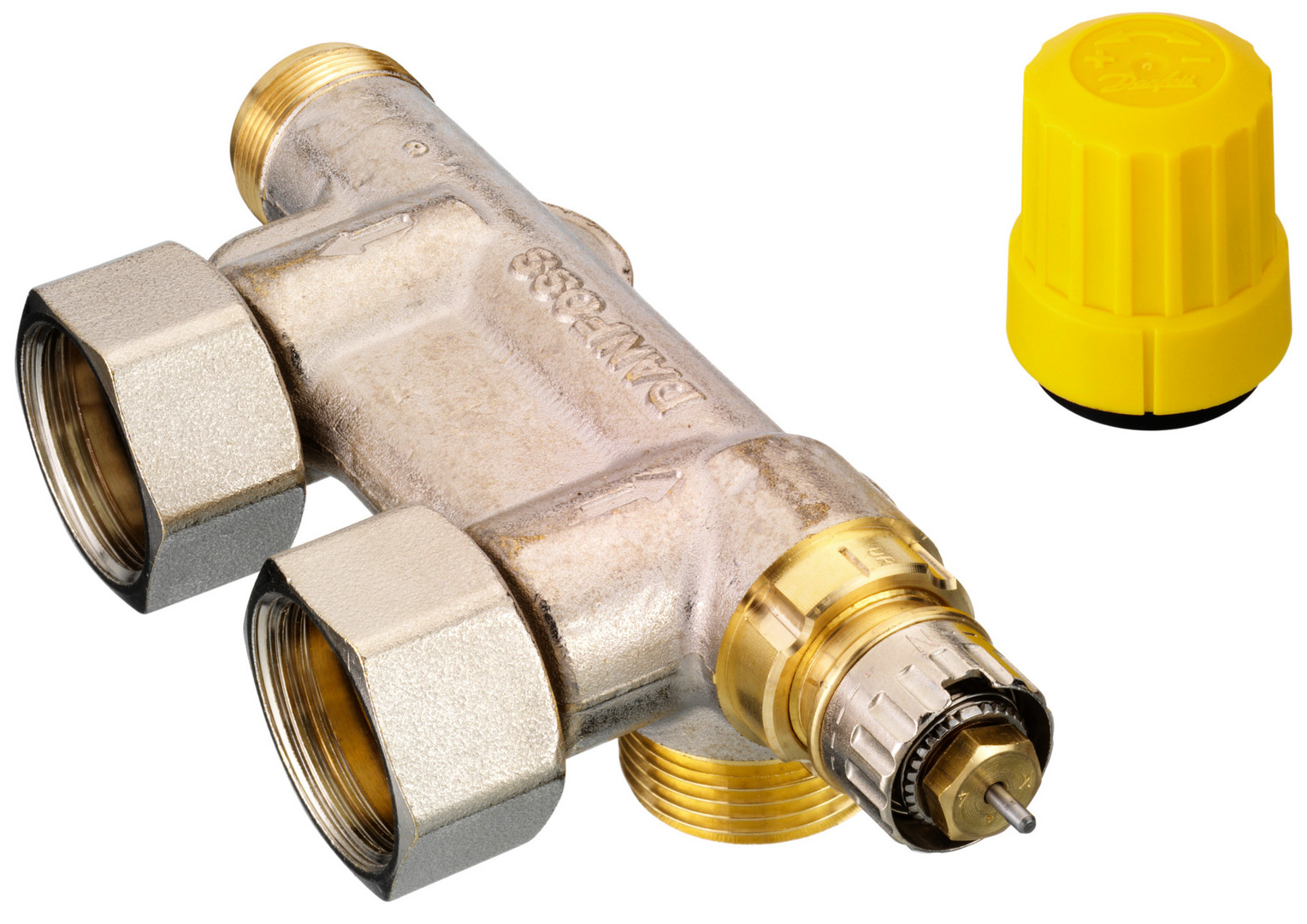 Danfoss Universalanschlussarmatur VHS-UR R 1/2 x G 3/4, Eckform, matt vernickelt