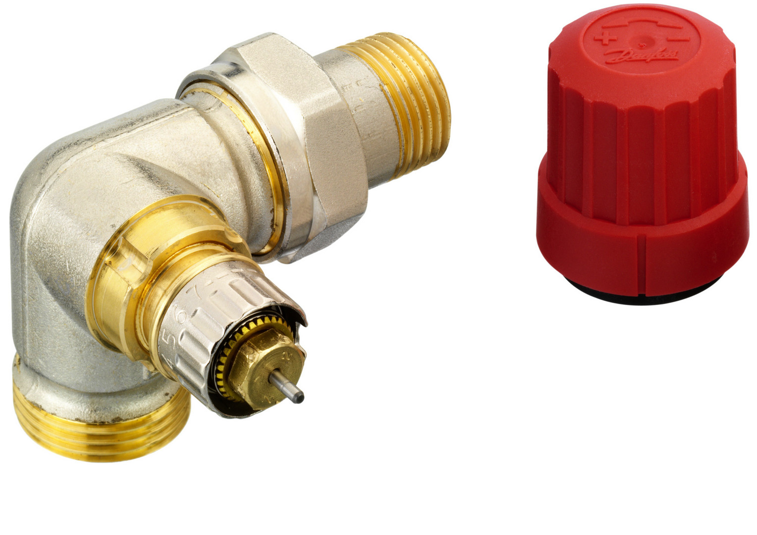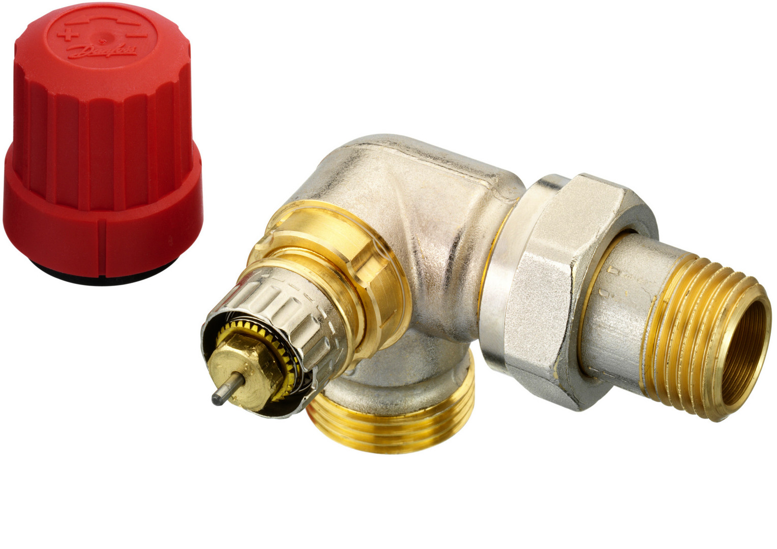 Danfoss Ventilgehäuse RA-N 15, R 1/2, Winkeleckform links, mit AG, matt vernickelt