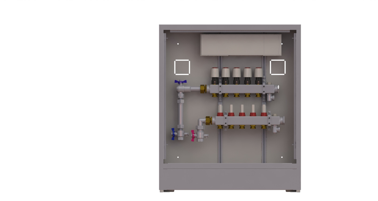 Danfoss Wohnungsstation UnoFloor Basic 5 Heizkreise, Montage links, Unterputz, mit Tür und Rahmen W843217