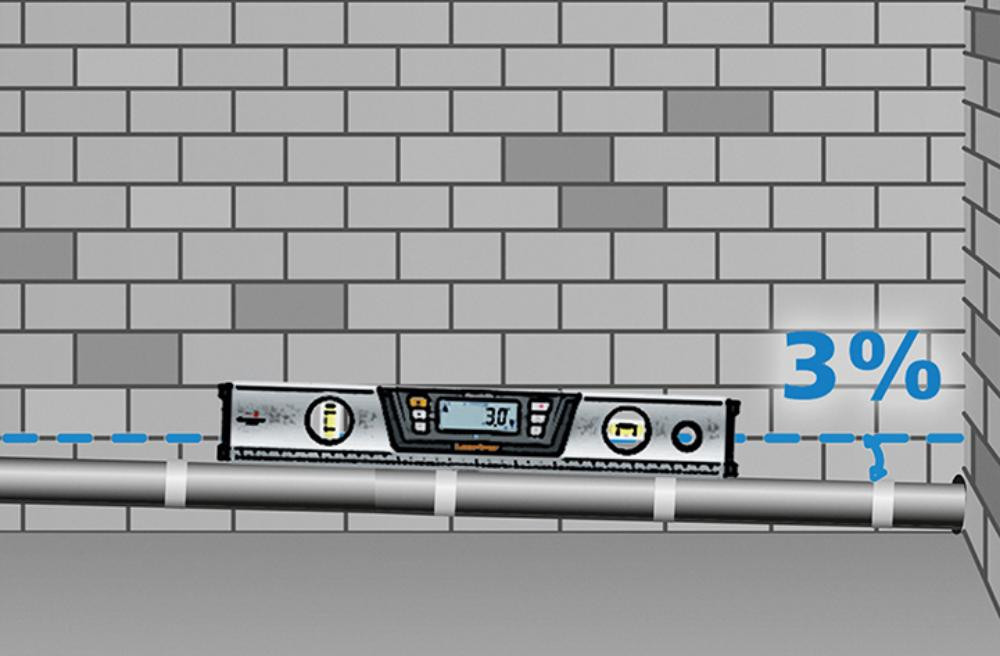 • Anzeige in Grad, Prozent, mm/m, in/ft