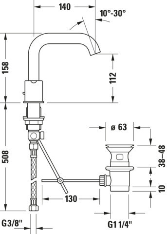 Duravit 3-Loch-Waschtisch-Armatur C.1 Ausladung 140mm, mit Zugstangen-Ablaufgarnitur, chrom