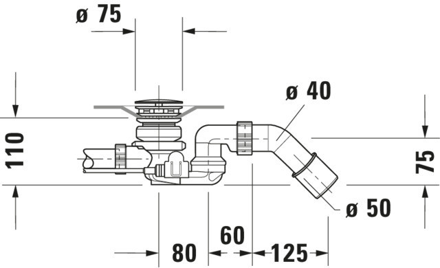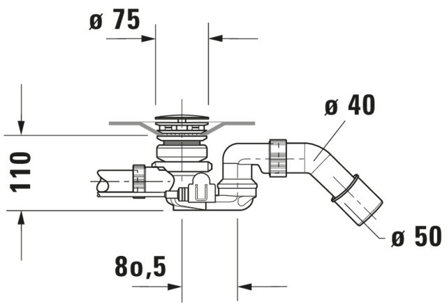 Duravit Ab- und Überlaufgarnitur Quadroval Bowdenzuglänge 107 cm, d= 5,2cm, mit Bodenzulauf, chrom