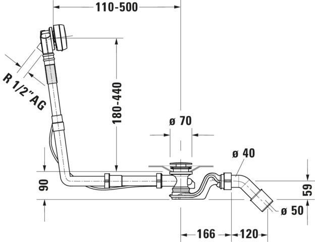 Duravit Ab- und Überlaufgarnitur Quadroval Bowdenzuglänge 85 cm, d= 5,2cm, mit Wanneneinlauf, chrom
