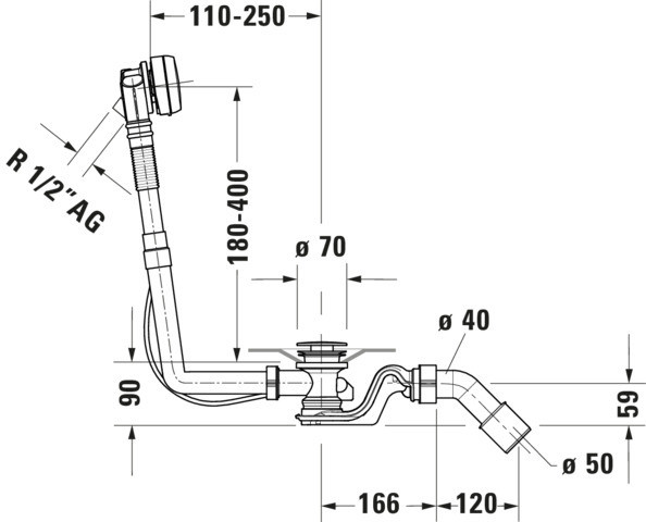 Bowdenzuglänge 53 cm, passend zu Badewannen D-Neo, Duravit No. 1, Starck