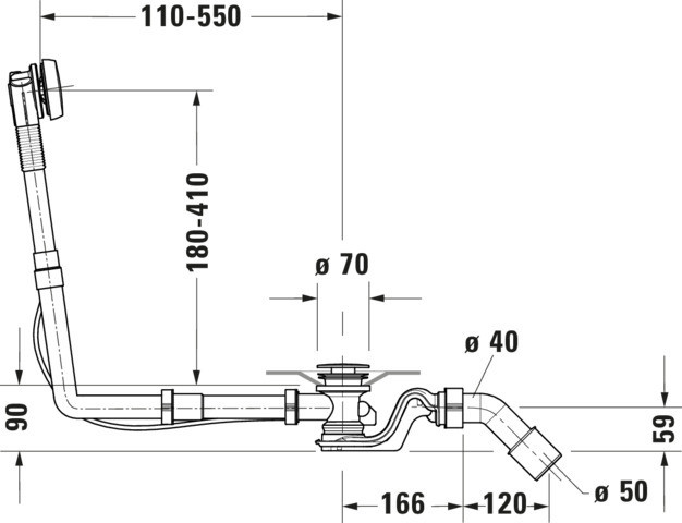 Bowdenzuglänge 70 cm, für zentralen Ablauf, passend zu Badewannen Happy D.2, Happy D.2 Plus