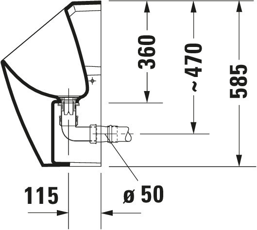 Abgang waagerecht Ø 50 mm, mit Befestigung und Geruchsverschluss