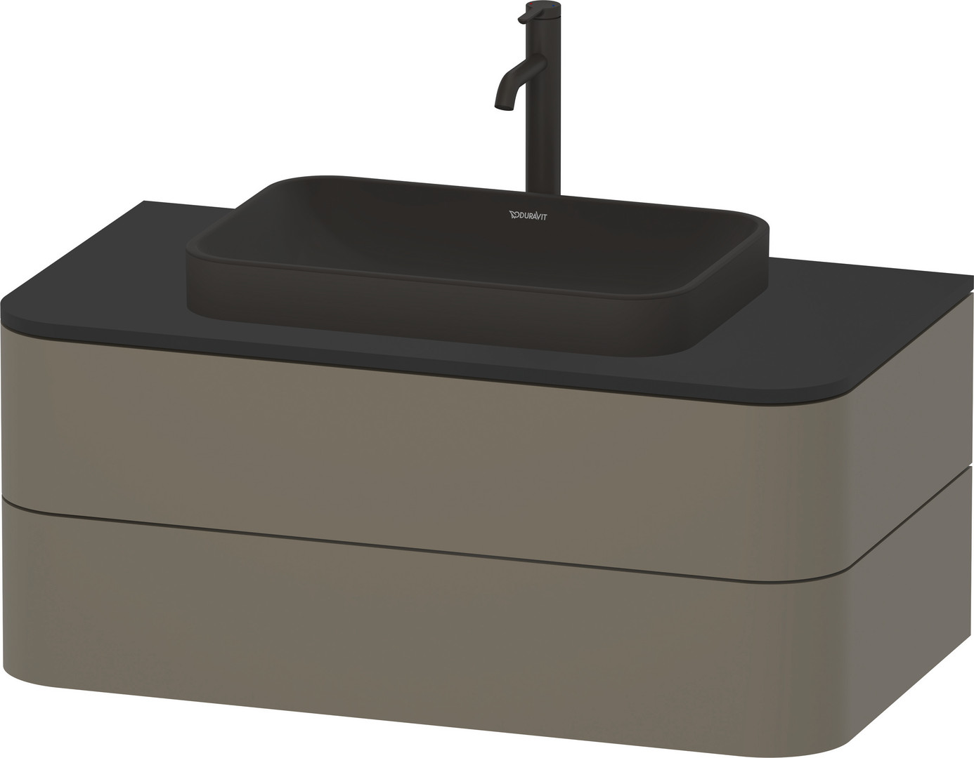 Duravit Aufsatz-Waschtisch Happy D.2 Plus 60 x 40 cm, geschliffen, ohne Hahnloch, Überlauf, Hahnlochbank, anthrazit matt WonderGliss