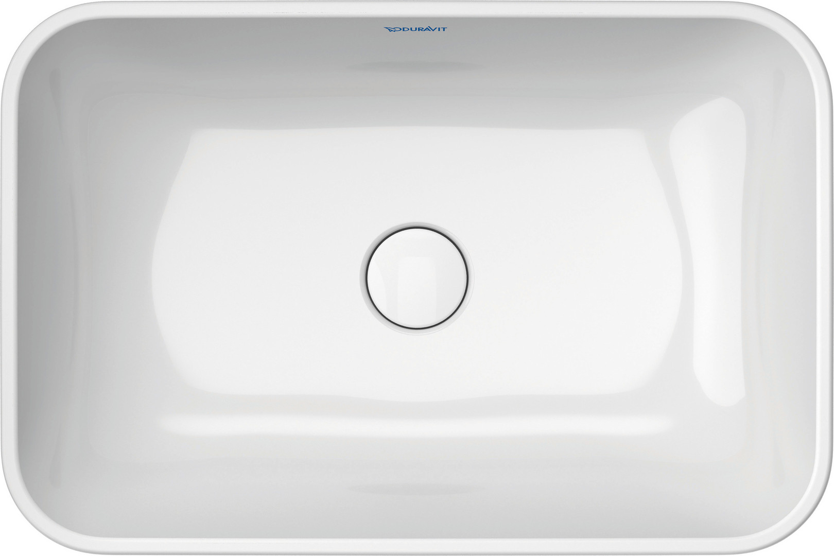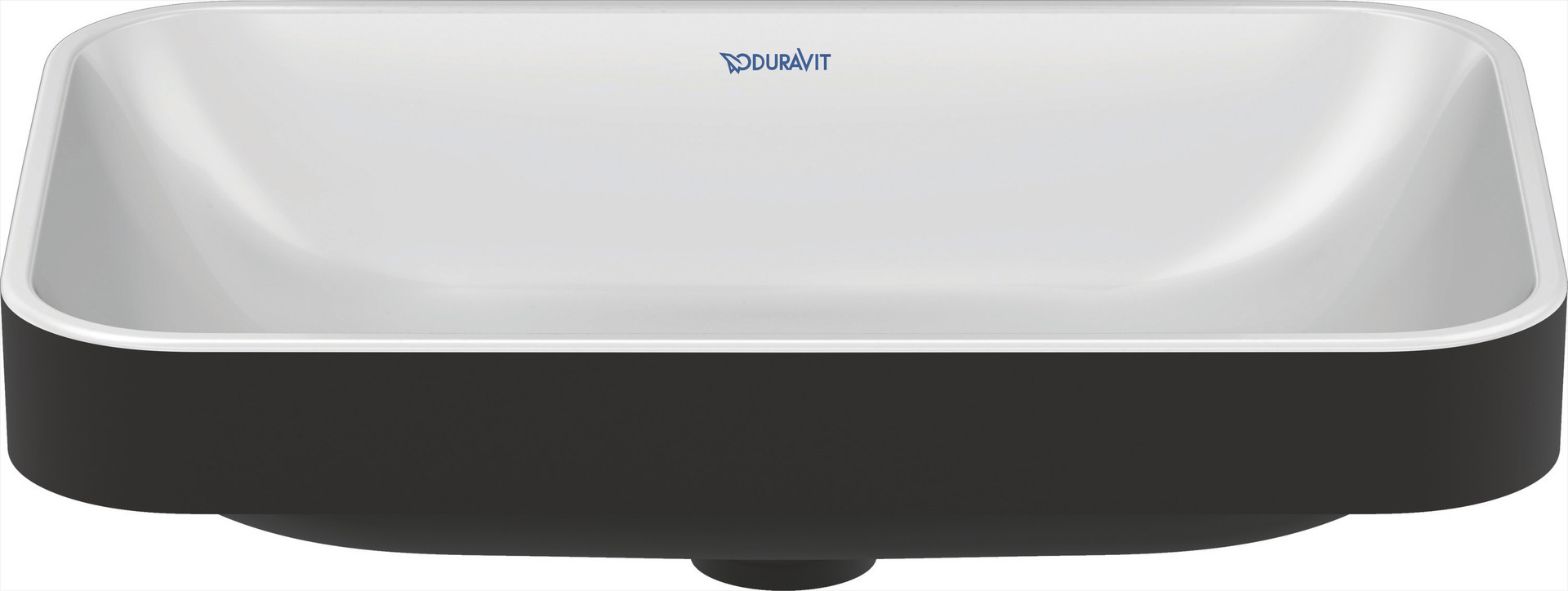 Duravit Aufsatz-Waschtisch Happy D.2 Plus 60 x 40 cm, geschliffen, ohne Hahnloch, Überlauf, Hahnlochbank, weiß/anthrazit matt