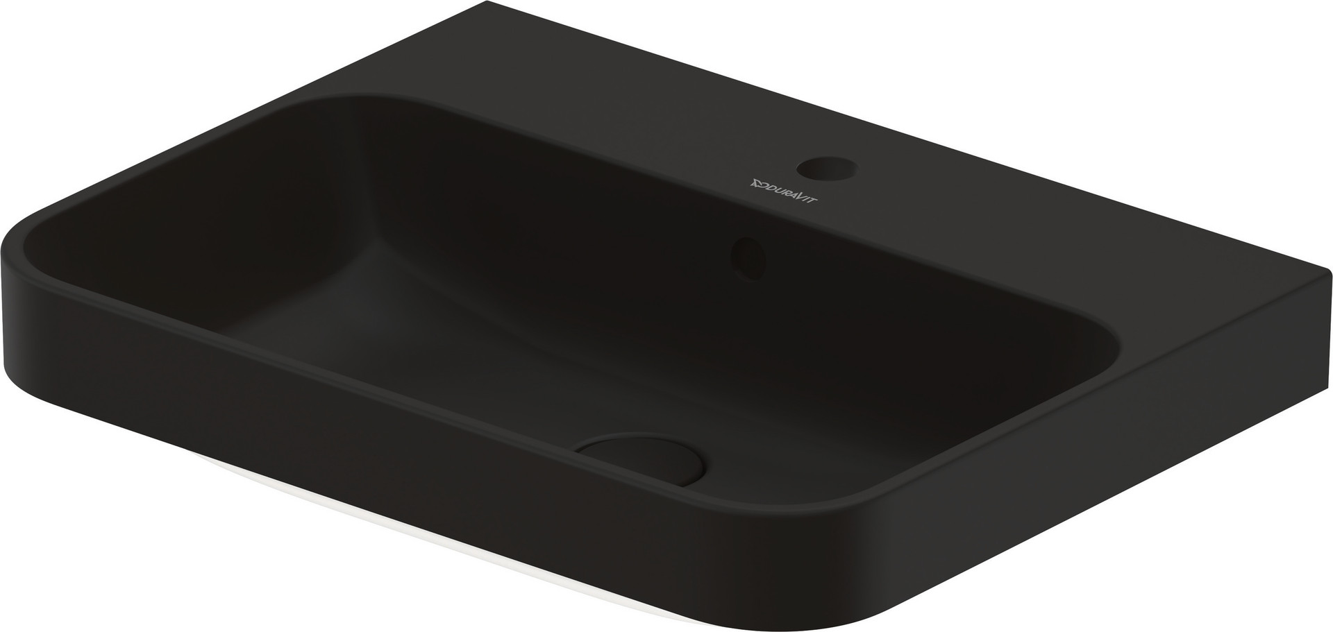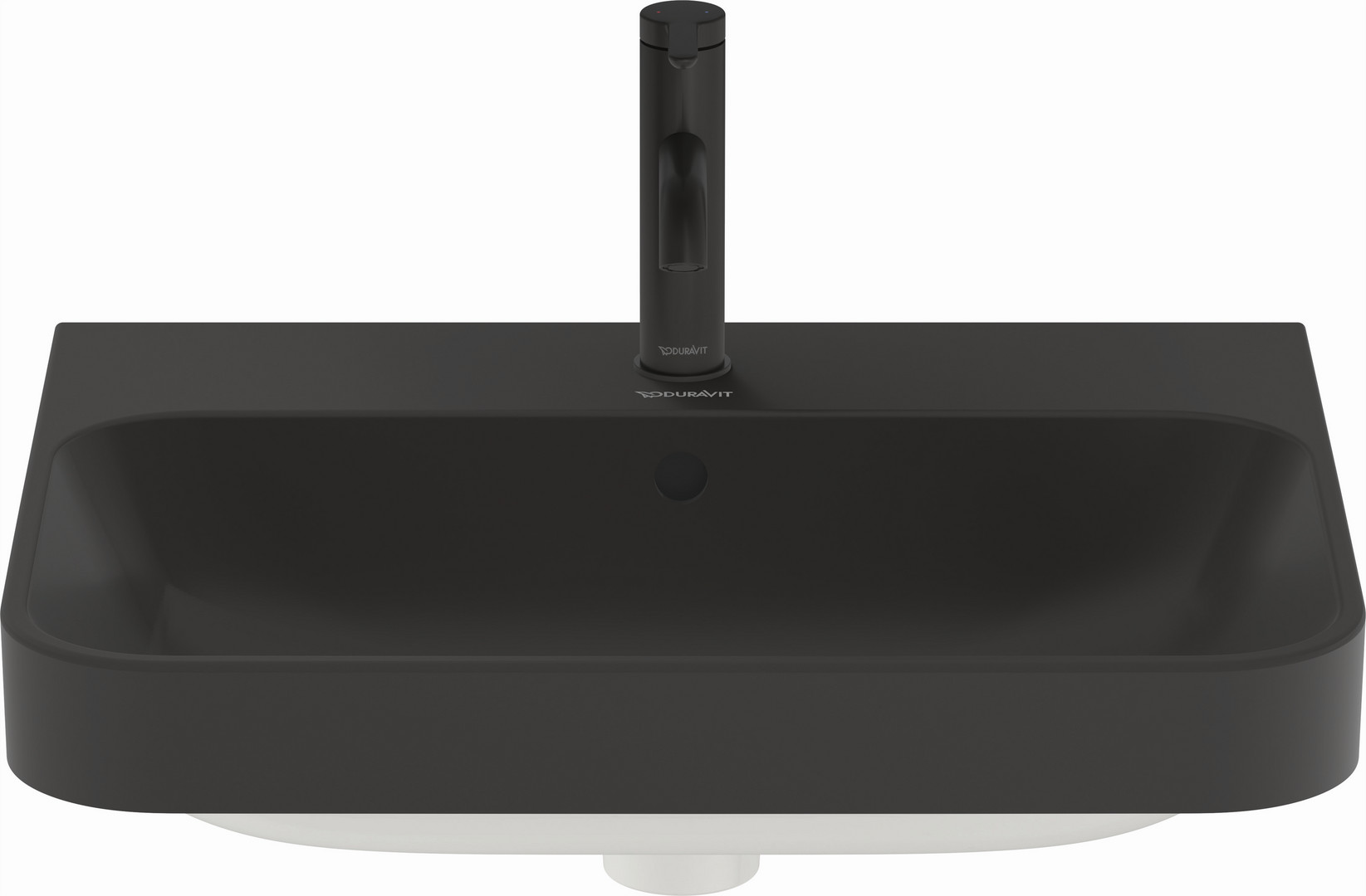 Duravit Aufsatz-Waschtisch Happy D.2 Plus 60x46cm, geschliffen, mit Hahnloch, Überlauf, Hahnlochbank, anthrazit matt WonderGliss