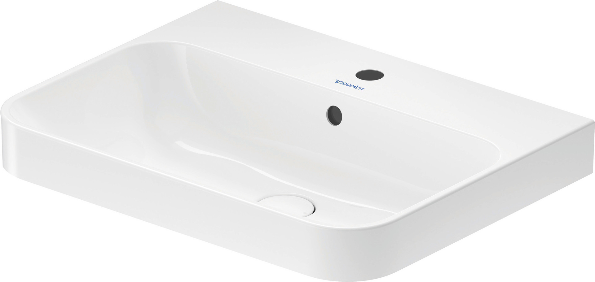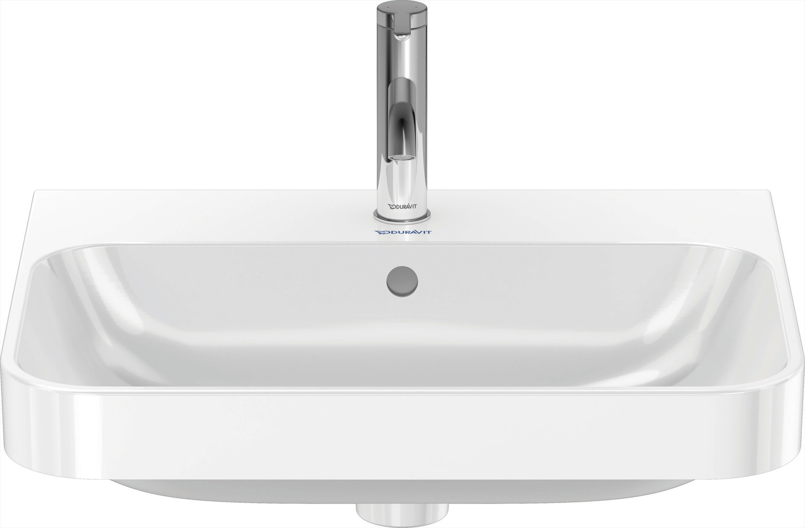 Duravit Aufsatz-Waschtisch Happy D.2 Plus 60x46cm, geschliffen, mit Hahnloch, Überlauf, Hahnlochbank, weiß WonderGliss