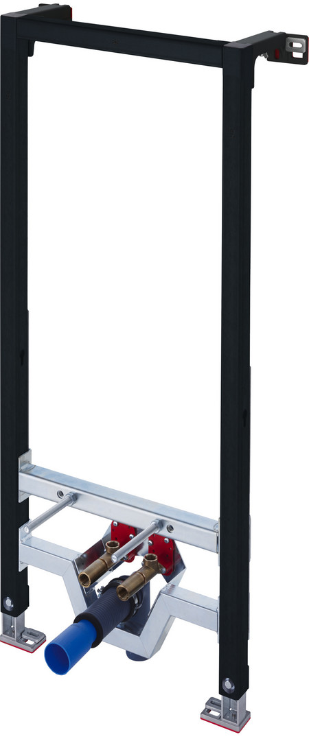 für Wand-Bidet, Metall-Traverse für Keramikbefestigung, selbsttragend, für Trockenbaumontage, geeignet für Beplankung mit Gipskartonplatten, pulverbeschichteter Rahmen, höhenverstellbare Füße 0-24 cm, Meterriss und Mittelrissmarkierung, erfüllt die Schallschutzanforderungen nach DIN 4109 und VDI 4100 (in Verbindung mit Schallschutzset), Traversen in Höhe verstellbar, bestehend aus Gewindebolzen M12, schallgedämmte Wandscheiben G1/2, Ablaufrohrschelle DN 50, HT-Ablaufbogen DN 50/40, Montagezubehör für Ständerleichtbauweise, Montagezubehör für Einzelmontage, 2x Abdeckkappen