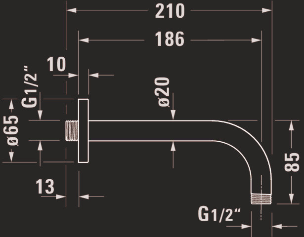 Duravit Brausearm 210 mm, chrom, gebogen, Wandmontage, Rosette eckig