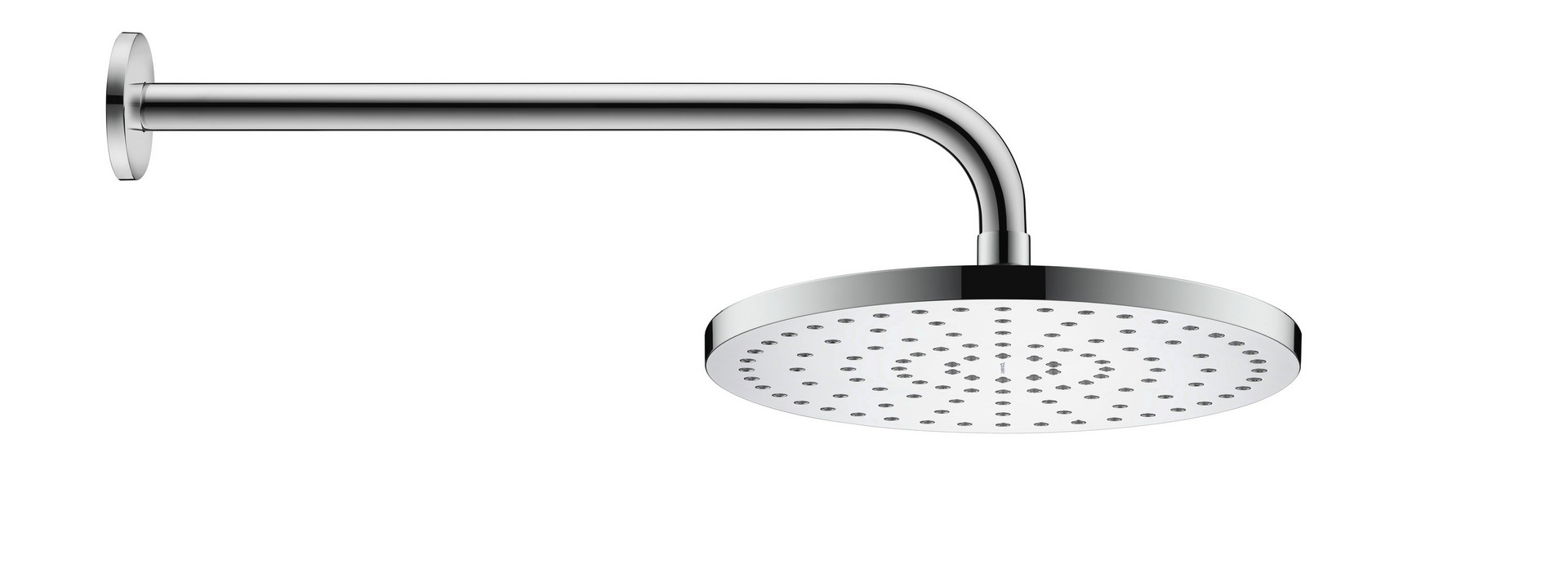 Duravit Brausearm 410 mm, chrom, gebogen, Wandmontage, Rosette rund