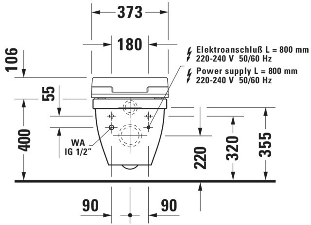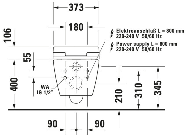 220-240 V, 50/60 Hz, Artikel 611000002304300 für ME by Starck, Starck 2, Starck 3 und Darling New, Artikel 611200002304300 für DuraStyle, Artikel 611300002304300 für Happy D.2, Artikel 611500002304300 für Vero Air, Absicherung nach EN 1717 integriert, mit Entkalkungsfunktion und Tabletten, Gesäß-, Lady- und Komfortdusche, mit Fernbedienung, Sperrfunktion über Fernbedienung, Ein/Aus-Schalter, mit verdeckten Anschlüssen