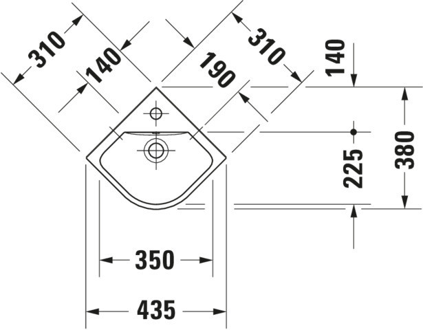 Duravit Eck-Handwaschtisch Me by Starck 43,5x38cm, mit Hahnloch, Überlauf, Hahnlochbank, weiß W31966
