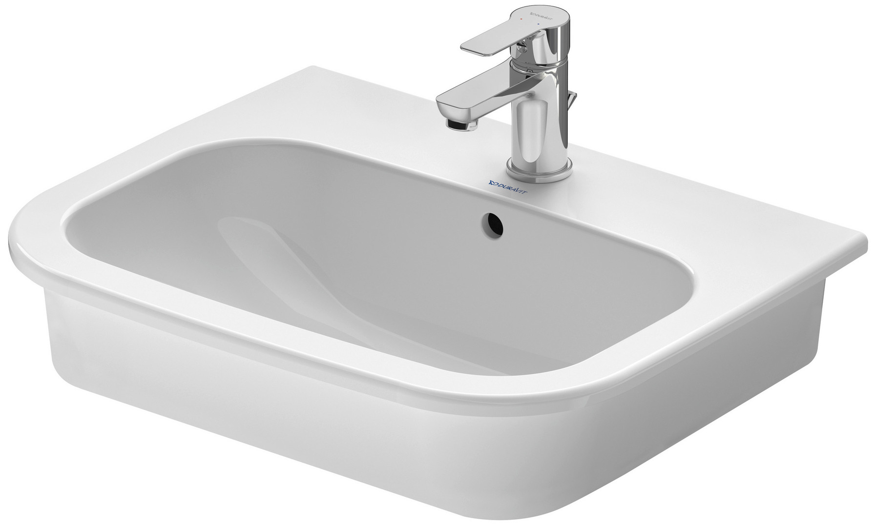 Duravit Einbau-Waschtisch D-Code 54,5x43,5cm, Einbau von oben, mit Hahnloch, Überlauf, Hahnlochbank, weiß