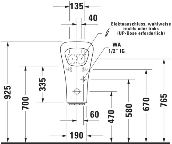 Duravit Elektronik-Absaug-Urinal DuraStyle 30x34cm, Zulauf von hinten, Netzanschluss, ohne Fliege, weiß W32486