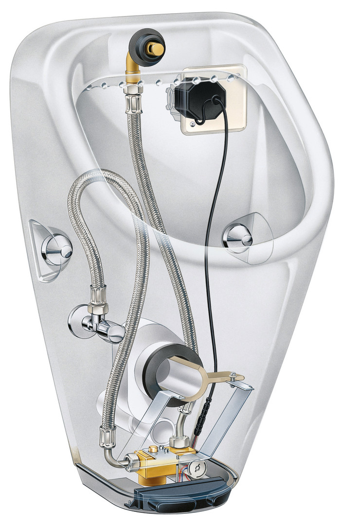 Anschlussmaß Wasseranschluss 1/2", Abgang waagerecht, verdeckter Abgang und Zulauf, min. Spülwassermenge 1 l, mit elektrischer Steuerung