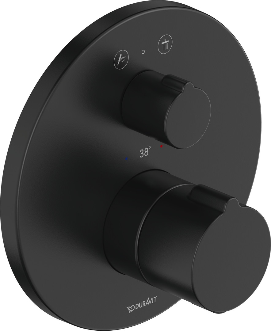 Duravit Fertigmontageset C.1 UP-Brause-Thermostat, rund, 2 Verbraucher, Ab- und Umstellventil, schwarz matt